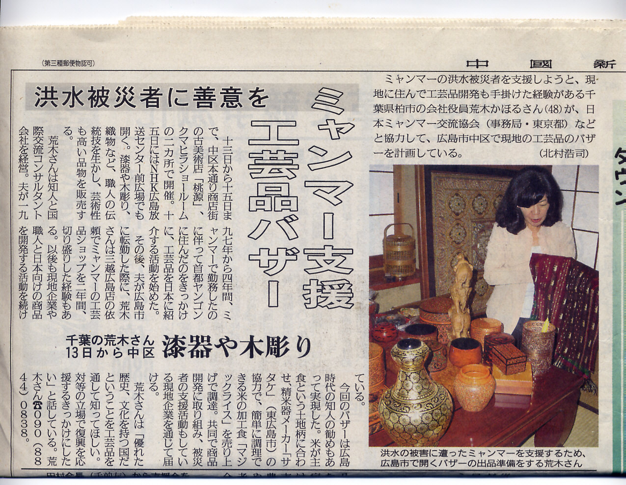 ミャンマー・サイクロン被災者のためのチャリティーバザールを広島で開催