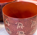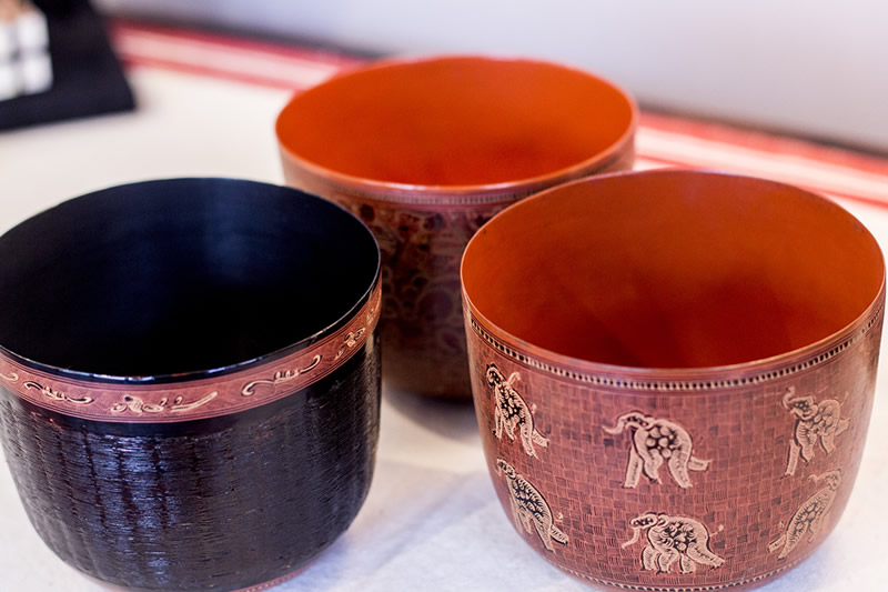 布製品 タペストリー チン族の布は45cm幅位のもので比較的落ち着いた色柄。二重織りになっていて裏は無地です。8,000円から(消費税別) read more タペストリー ナガ族の布は「わざと楽しい柄にしているんですか?」と聞かれること度々。とても楽しい柄です。7,000円から(消費税別) read more バック チン族の布は色柄が落ち着いていてお洋服に合わせやすい。持ち手は現地の牛革。軽いので使い勝手も良いです。7,000円から(消費税別) read more ポーチ、長財布 ラフ族やアカ族の布は小さくても主張があります。柄も楽しめますが、バックの中で目立つので便利。2,800円から(消費税別) read more 絹・綿のショール 手紡ぎ、天然染めの糸を手織りにした布は、肌に優しく、使い込むほどに深い味わいが出ます。3,000円から(消費税別) read more 蓮のショール しっとりとした手触りと存在感のある質感は「ぐうし」ならではです。究極の天然素材、是非お洒落に着こなしてください。28,000円から(消費税別) read more タティングレース ショール 50×120CMのような大きいショールは欧米や日本ではなかなか出来ません。ミャンマーのオリジナリティーです。20,000円から(消費税別) read more チュニック タティングレースの衣料品はとても珍しくミャンマーならではの作品です。着用して立体感が出るとモチーフの美しさが際立ちます。S 35,000円から L 60,000円程度 read more 木彫 仏像 ミャンマーの仏像は「威厳がある」というより「優しい」顔立ち。疲れを癒してくれる、ほっと出来る木彫です。6,000円~数万円位迄。素材・大きさに応じて read more 僧侶 僧侶の木彫りは托鉢を持って座っている姿、団扇を肩に立っている姿の2種類が多く、仏像と一緒に置かれています。6,000円~数万円位迄。素材・大きさに応じて read more 僧侶 僧侶の木彫りは托鉢を持って座っている姿、団扇を肩に立っている姿の2種類が多く、仏像と一緒に置かれています。6,000円~数万円位迄。素材・大きさに応じて read more 透かし彫り 透かし彫りには仏教に関連するモチーフが多く見られます。ダイナミックな彫りが特徴です。5,000円~数万円位まで 素材・大きさに応じて read more 銀製品・ブロンズ 銀のかぼちゃ 叩き出しで柄を浮き彫りにしています。かぼちゃの柔らかい曲線は見事。時間とともにいぶし銀の深い味わいが出ます。価格:大きさに応じて。 銀の器 仏教催事の際に「お清めの水」(水に香料を入れた良い香りの水)を入れる器は趣があります。柄は「叩き出し」の技法。価格:大きさに応じて。 ブロンズ 宮廷の男女 11世紀バガン王朝時代の華やかさを感じる姿。人をモチーフにした小さなブロンズ細工はエスニックな雰囲気たっぷりのインテリア小物。6,000円から(消費税別) ブロンズ 婚礼の儀式 新郎新婦が象にのってお披露目をしています(先頭の象っと一対)。ほのぼのとした作品です。動物シリーズは色々。3,000円から(消費税別) 漆器 財布 アンティークスタイルです。柄は籃胎に「きんま」等の技法。トレス、和服に合わせてパーティーバックに…。価格:技法、大きさに応じて。 read more 仏陀、僧侶にお供物を 寄進する器 王朝時代、王族に献上する食べ物も入れていた特別な形です。捲胎の素地に「きんま技法」他。価格:技法、大きさに応じて。 read more 小物入れ 捲胎素材が主流のため丸い形の器が多く見られますが、長方形のものもあります。価格:技法、大きさに応じて。 read more 馬毛カップ 馬毛胎(馬毛と竹で編む)の素地はミャンマーだけ。薄くてふにゃふにゃした不思議な漆器。価格:技法、大きさに応じて。 read more 白蝶貝 小皿、入れ物等 ゴツゴツとした貝をまずツルツルに磨き、彫り込みを入れたり貼り合わせます。天然素材は食器としても安心。800円から(消費税別) read more スプーン 長さのあるものは貝一枚から数本しか出来ません。天然素材は食器としても安心。My spoonに、離乳食用に。1,300円から(消費税別) read more かんざし 天然の色を活かしてカットした花。小さくても存在感のある髪飾り。6,500円から(消費税別)商品ライン詳細は「アクセサリー」をクリック。 read more ペンダントトップ 白蝶貝にシルバーでデザインを加え、中心にはキュービックジルコニア。一点のみ。13,000円(消費税別)白蝶貝の商品ラインは「アクセサリー」をクリックしてください。 read more 木製品 小箱 蓋に白蝶貝を埋め込んだデザイン。外したピアスやリング、置き忘れのないよう入れておくと便利です。3,000円から(消費税別) read more こぶ木の小物 パダウという木の樹液が固まって「こぶ木」になるとバラの花のような柄が出ます。この柄を活かした小物。 read more 籐・竹製品 ベビーケインのバック 大小様々なバック。軽いことも魅力の一つです。価格:大きさ、デザインに応じて。 バスケット 大、中、小と大きさ様々なバスケット。価格:大きさに応じて。